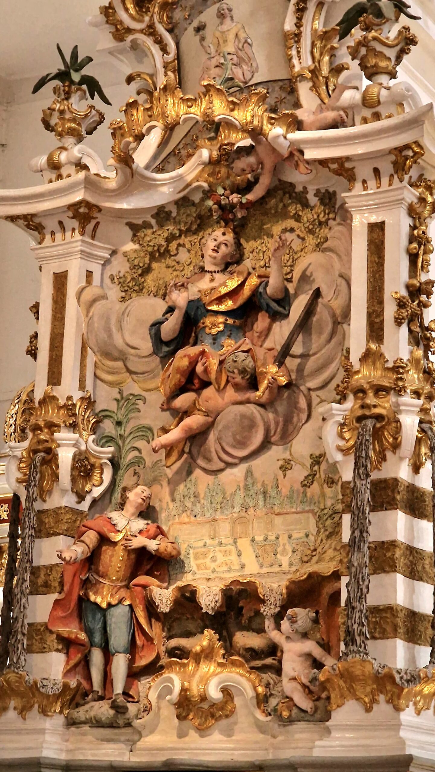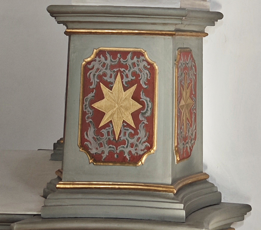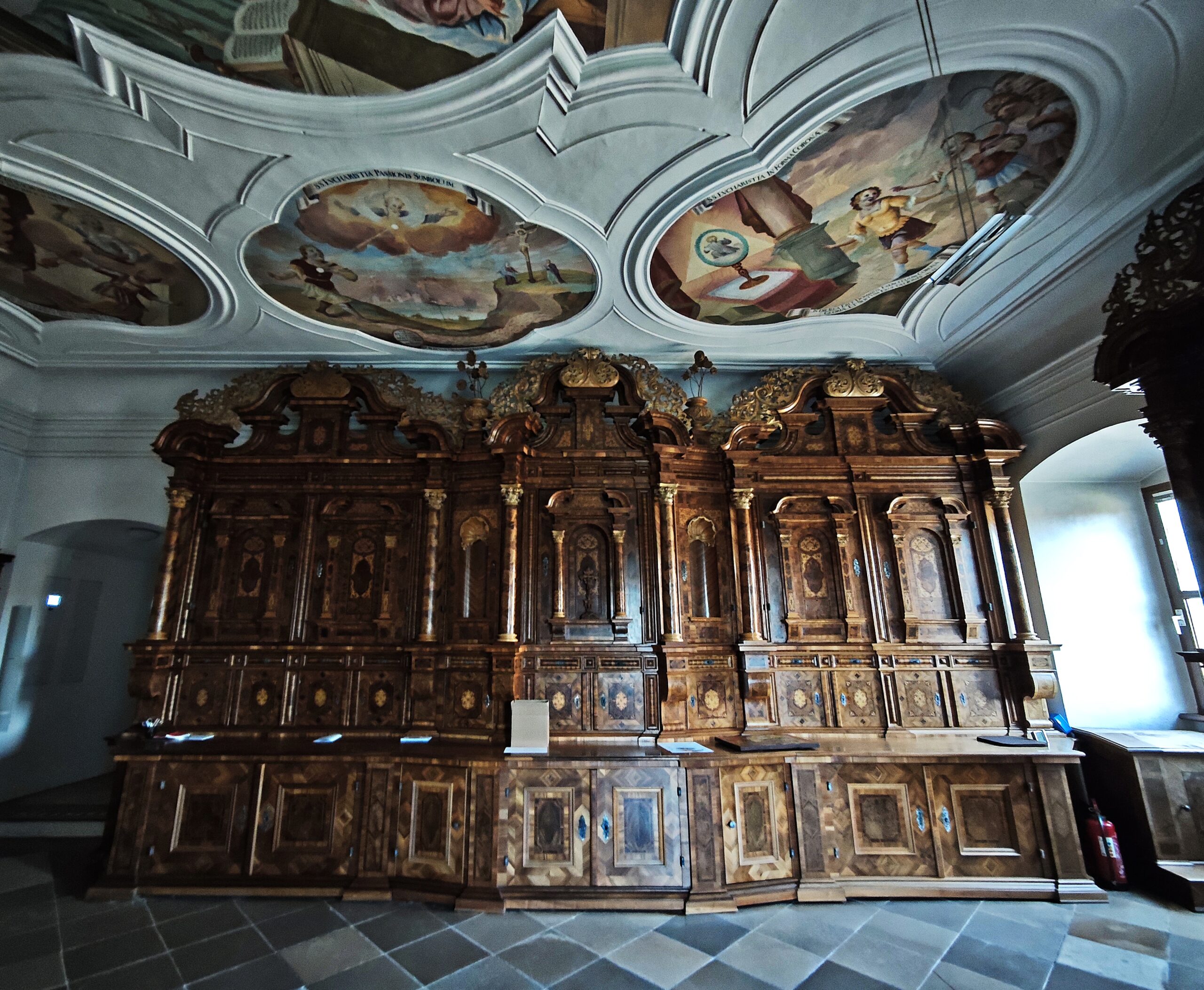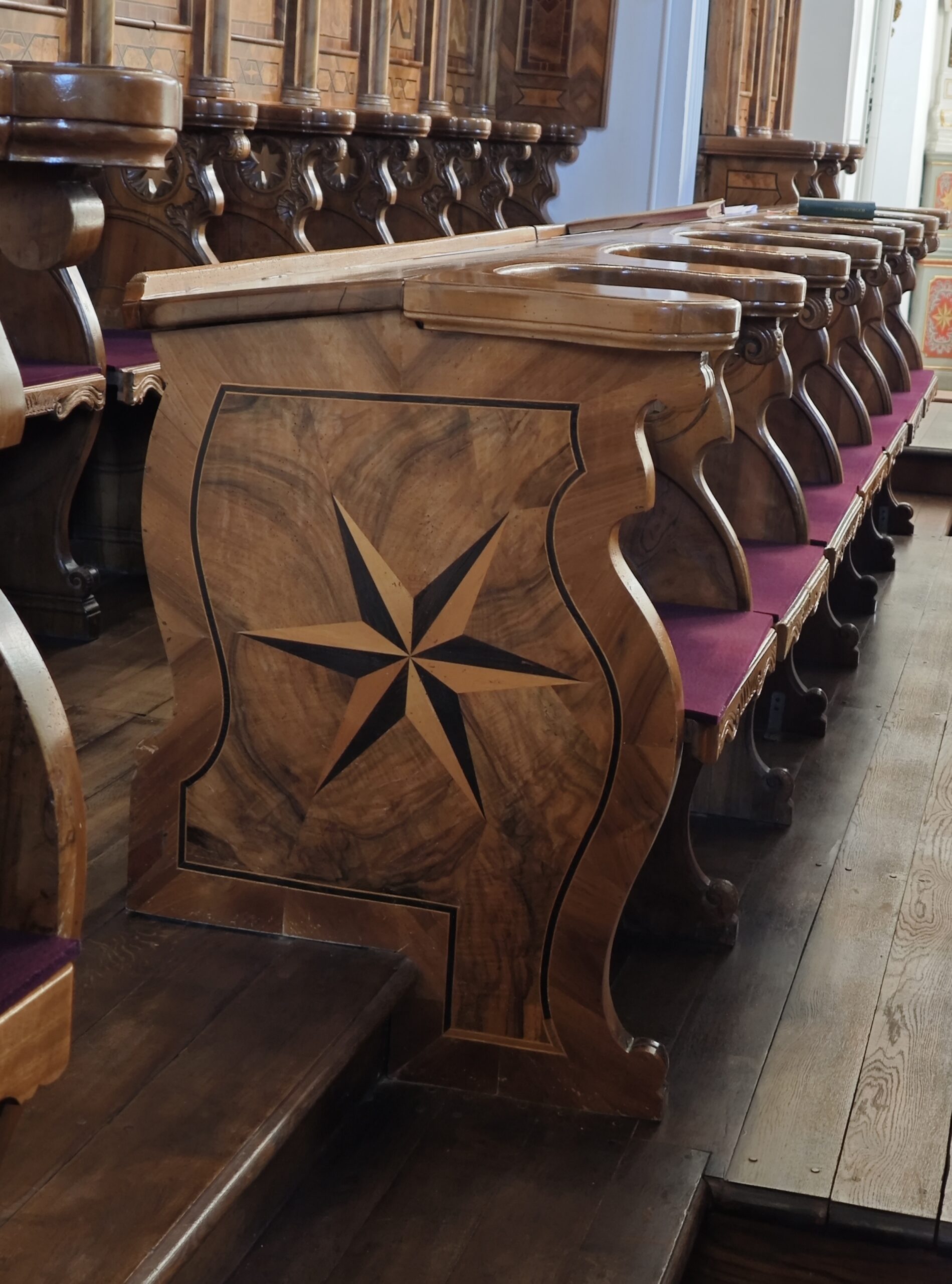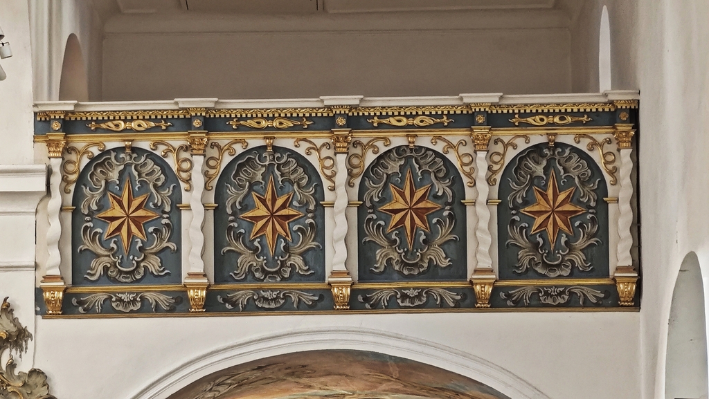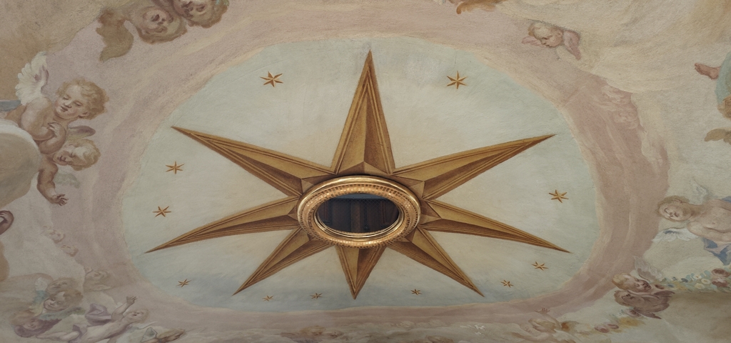 Попри це, епітет Володарка Зірок (Herrin der Sterne) я зустріла вперше у храмі абатства Віндберга. Вочевидь, це локальний вираз, що вживають до Діви Марії, яка знаходиться посеред величезної кількості зірок: усього їх у цій церкві 365 – стільки, скільки ж, скільки днів у році. Пояснення цьому декору досить просте, але неочікуване – абат Бернард Штрелін, який керував переоформленням храму в найкращий період монастиря, що припав на XVIII ст. (ще перед секуляризацією), був не тільки глибоким теологом та очільником монашої спільноти, але й астрономом-аматором.