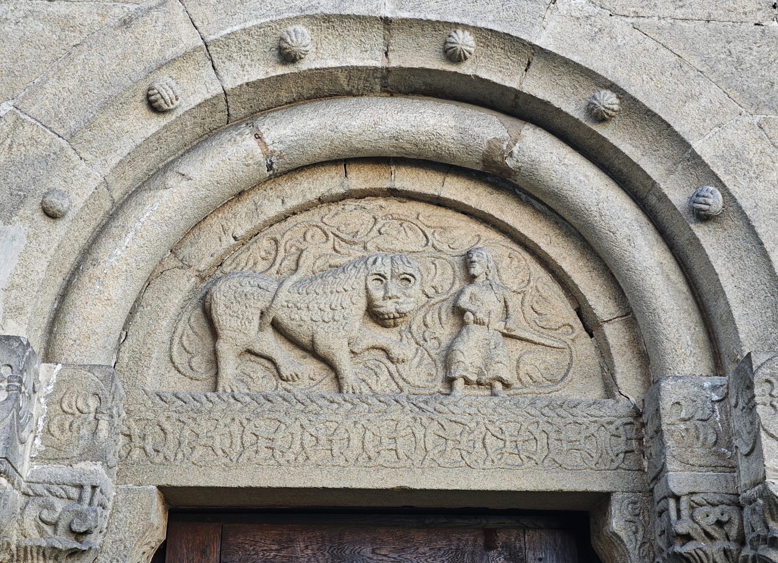 Це може пояснити, що король Вамба так сильно розкаявся, коли відійшовши від азарту полювання, зрозумів, що вбив не тільки безмовну компаньйонку Егидія, але й священну тварину. А підбив його на це диявол. Придивіться до вівтаря – він ховається за гротом.