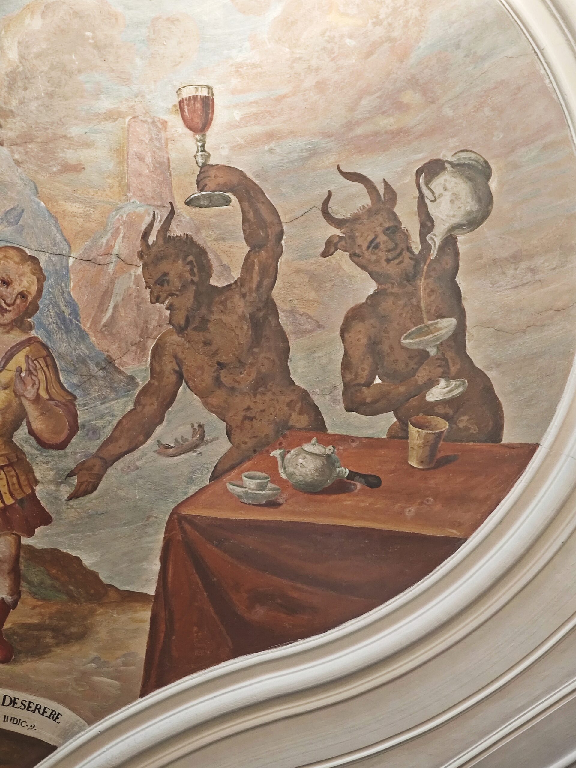 Розвеселила нас історія про спокушання людської душі чортами, які відвертають її від справжньої Віри тими спокусами, що, як тоді вважалося, підступно занапащають християнську душу – алкоголем і… кавою! З алкоголем усе зрозуміло, а от чому кава? А тому, що хоча Європа вже знала, що таке кава і залюбки її пила, але церква не дуже вітала нову традицію, оскільки вважала її суто басурманським звичаєм. (Сиджу, редагую допис і посьорбую чорну-пречорну каву).