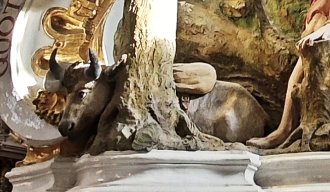 Нагорі цього вівтаря зображено бика. І знову ж це не пов’язано з календарною датою вшанування святого, яка припадає на 7 грудня.